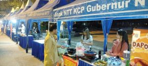 Kupang, NTT Puluhan Tenda berbentuk lopo/gazebo milik Bank NTT memenuhi halaman depan GOR Flobamora, Kupang, Sabtu 23 Agustus 2025. Dari..