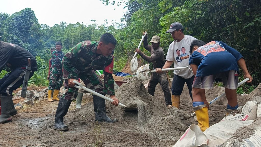 Semangat gotong royong antara TNI dan masyarakat terlihat nyata pada hari terakhir pelaksanaan pra-TNI Manunggal Membangun Desa (TMMD) ke-127 Kodim 1402 Polewali Mandar (Polman). Personel TNI bersama warga bahu-membahu mengerjakan sasaran fisik di ruas jalan poros Bulo–Lenggo, Desa Bulo, Kecamatan Bulo, Kabupaten Polman, Senin 9 Februari 2026)l.