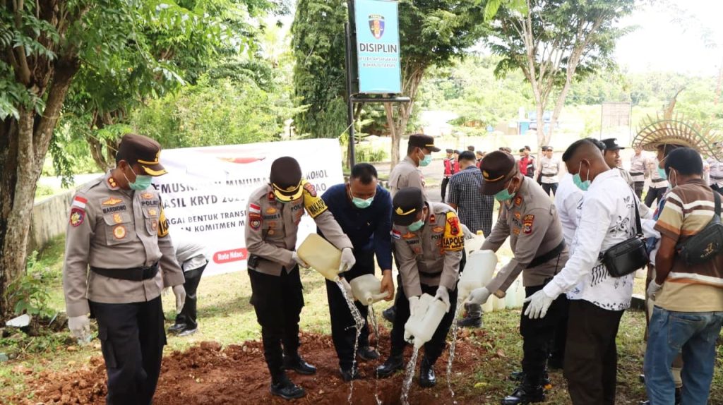 “Semenjak diamankan dari warga yang melakukan pengulangan hingga hari ini dilakukan pemusnahan dan disaksikan oleh seluruh peserta yang hadir, Seluruh Miras sebanyak 550 liter masih dalam status quo,” jelas Kapolres.***